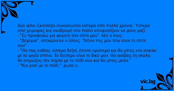 - "Σε προσκαλώ για φαγητό στο σπίτι μου", λέει ο ένας.
