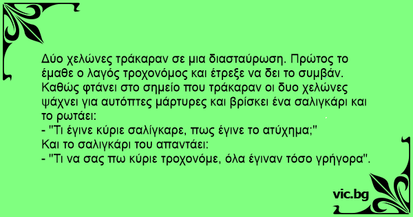 - "Τι έγινε κύριε σαλίγκαρε, πως έγινε το ατύχημα;"