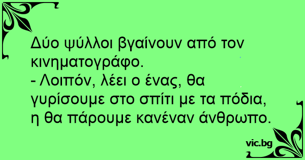 - Λοιπόν, λέει ο ένας, θα γυρίσουμε στο σπίτι με τα πόδια, η θα πάρουμε κανέναν άνθρωπο.