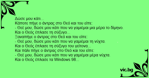 Κάποτε πήγε ο άντρας στο Θεό και του είπε: