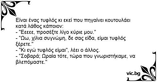 - "Κι εγώ τυφλός είμαι", λέει ο άλλος.
