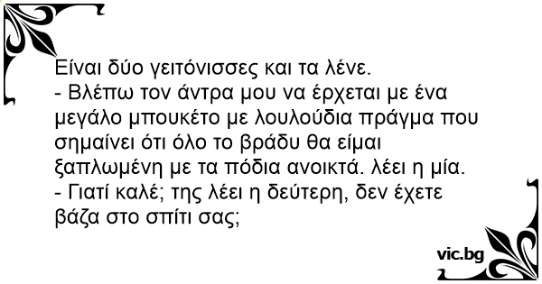 - Γιατί καλέ; της λέει η δεύτερη, δεν έχετε βάζα στο σπίτι σας;