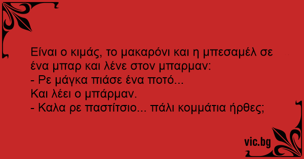 Είναι ο κιμάς, το μακαρόνι και η μπεσαμέλ σε ένα μπαρ και λένε στον μπαρμαν: