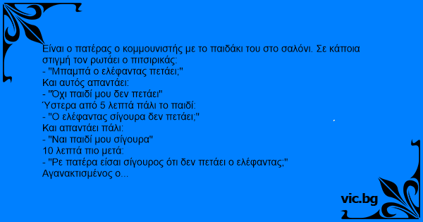 - "Ρε πατέρα είσαι σίγουρος ότι δεν πετάει ο ελέφαντας;"