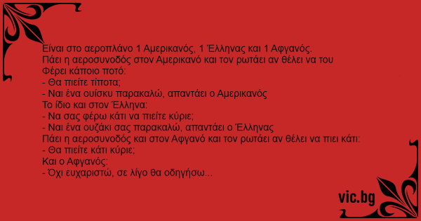 Πάει η αεροσυνοδός και στον Αφγανό και τον ρωτάει αν θέλει να πιει κάτι: