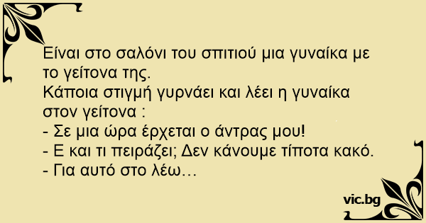 Κάποια στιγμή γυρνάει και λέει η γυναίκα στον γείτονα :