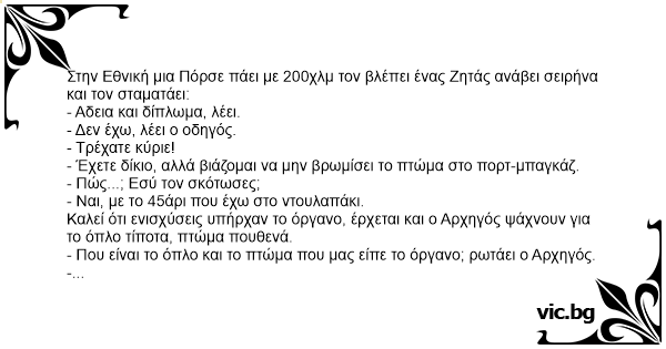 Στην Εθνική μια Πόρσε πάει με 200χλμ τον βλέπει ένας Ζητάς ανάβει σειρήνα και τον σταματάει: