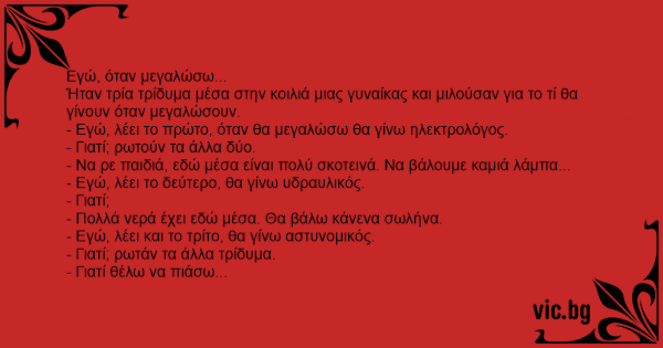 - Εγώ, λέει το δεύτερο, θα γίνω υδραυλικός.