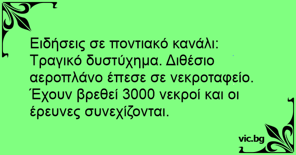 Num jornal local, chega a noticia que dizia: "Minha nossa, estamos ao vivo, e acabamos de saber que um helicóptero caiu em um cemitério e o mais curioso: já encontraram mais de 3.800 corpos !