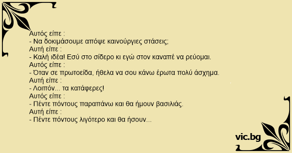 - Καλή ιδέα! Εσύ στο σίδερο κι εγώ στον καναπέ να ρεύομαι.