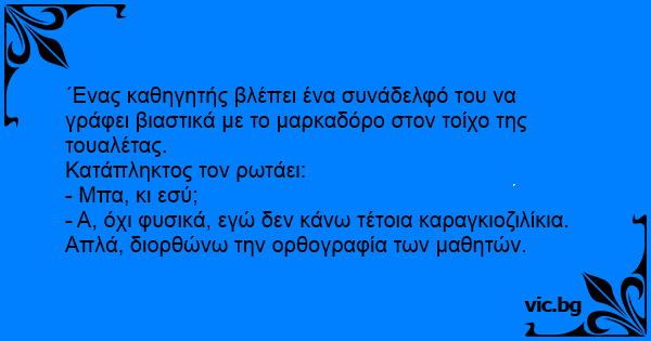 - Α, όχι φυσικά, εγώ δεν κάνω τέτοια καραγκιοζιλίκια. Απλά, διορθώνω την ορθογραφία των μαθητών.