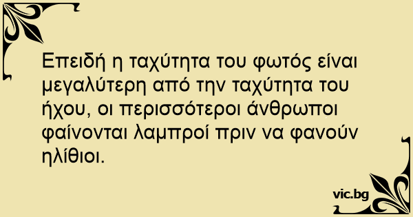 Επειδή η ταχύτητα του φωτός είναι μεγαλύτερη από την ταχύτητα του ήχου, οι περισσότεροι άνθρωποι φαίνονται λαμπροί πριν να φανούν ηλίθιοι.