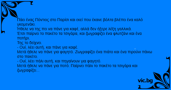 Πάει ένας Πόντιος στο Παρίσι και εκεί που έκανε βόλτα βλέπει ένα καλό γκομενάκι.