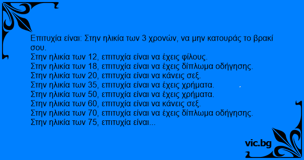 Επιτυχία είναι: Στην ηλικία...
