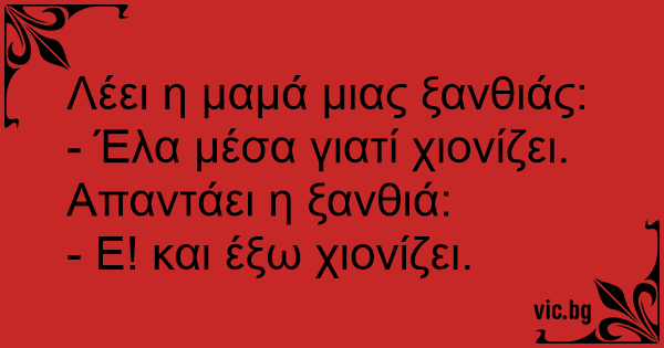 - Ε! και έξω χιονίζει.