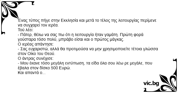 Ένας τύπος πήγε στην Εκκλησία και μετά το τέλος της λειτουργίας περίμενε να συγχαρεί τον ιερέα.