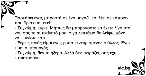 Παρκάρει ένας μπροστά σε ένα μαγαζί, και λέει σε κάποιον που βρίσκεται εκεί: