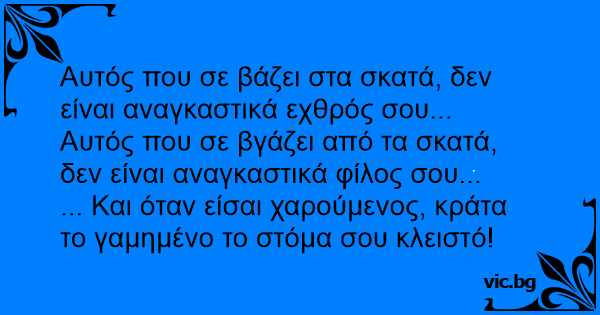 Αυτός που σε βάζει στα σκατά, δεν είναι αναγκαστικά εχθρός σου...