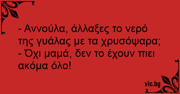 - Αννούλα, άλλαξες το νερό της γυάλας με τα χρυσόψαρα;