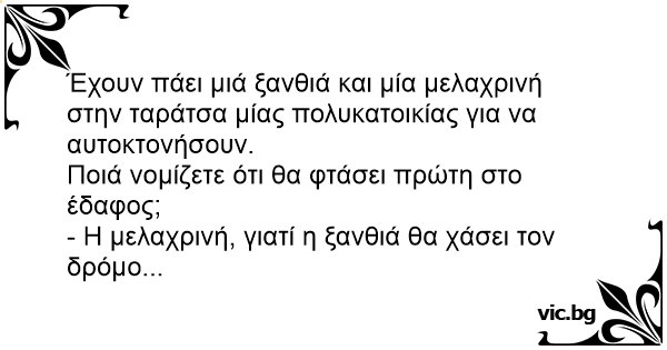 Έχουν πάει μιά ξανθιά και μία μελαχρινή στην ταράτσα μίας πολυκατοικίας για να αυτοκτονήσουν.