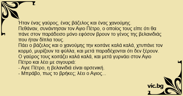 Ο γαύρος τους κοιτάζει καλά καλά, και μετά γυρνάει στον Αγιο Πέτρο και λέει με σιγουριά: