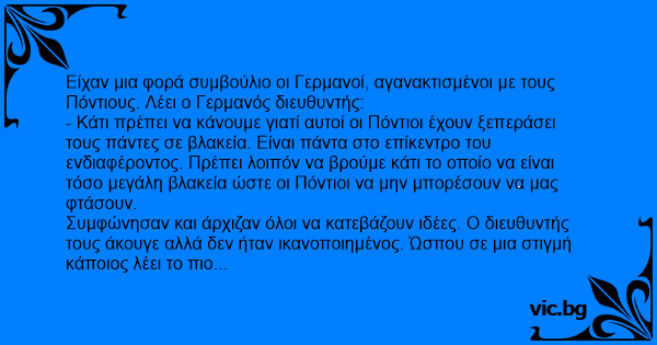 Είχαν μια φορά συμβούλιο οι Γερμανοί, αγανακτισμένοι με τους Πόντιους. Λέει ο Γερμανός διευθυντής: