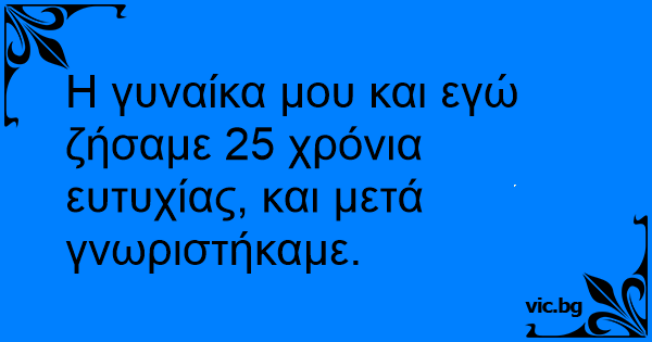 Η γυναίκα μου και εγώ ζήσαμε 25 χρόνια ευτυχίας, και μετά γνωριστήκαμε.