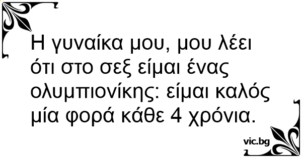Η γυναίκα μου, μου λέει ότι στο σεξ είμαι ένας ολυμπιονίκης: είμαι καλός μία φορά κάθε 4 χρόνια.