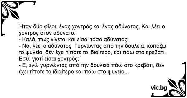 Ήταν δύο φίλοι, ένας χοντρός και ένας αδύνατος. Και λέει ο χοντρός στον αδύνατο: