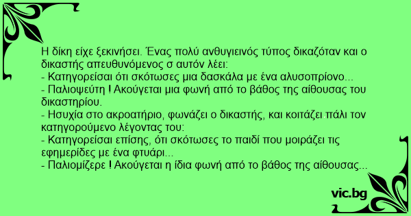 - Είπα ησυχία ! Φωνάζει ο δικαστής, κοιτάζει πάλι τον κατηγορούμενο και του λέει: