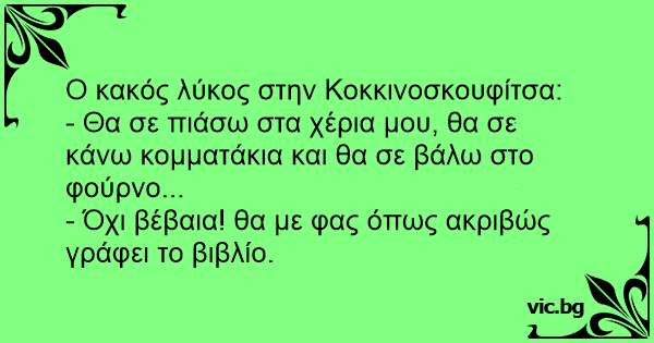 - Όχι βέβαια! θα με φας όπως ακριβώς γράφει το βιβλίο.