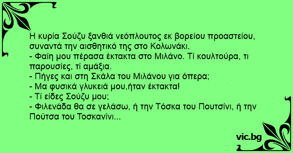 - Φιλενάδα θα σε γελάσω, ή την Τόσκα του Πουτσίνι, ή την Πούτσα του Τοσκανίνι...
