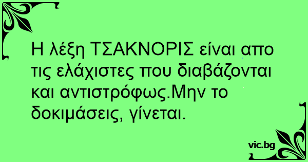 Η λέξη ΤΣΑΚΝΟΡΙΣ είναι απο τις ελάχιστες που διαβάζονται και αντιστρόφως.Μην το δοκιμάσεις, γίνεται.