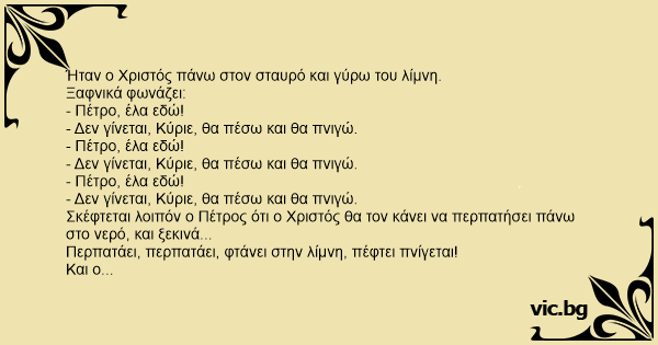 Σκέφτεται λοιπόν ο Πέτρος ότι ο Χριστός θα τον κάνει να περπατήσει πάνω στο νερό, και ξεκινά...