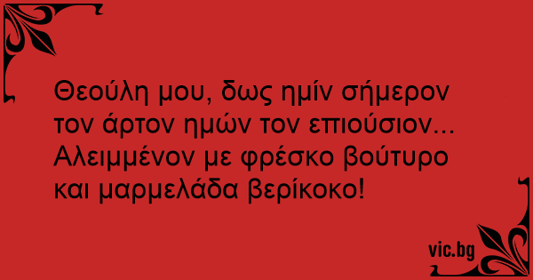 Θεούλη μου, δως ημίν σήμερον τον άρτον ημών τον επιούσιον...