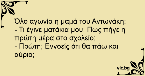 - Τι έγινε ματάκια μου; Πως πήγε η πρώτη μέρα στο σχολείο;
