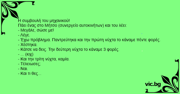 Πάει ένας στο Μήτσο (συνεργείο αυτοκινήτων) και του λέει: