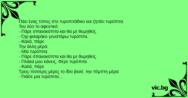 Πάει ένας τύπος στο τυροπιτάδικο και ζητάει τυρόπιτα.