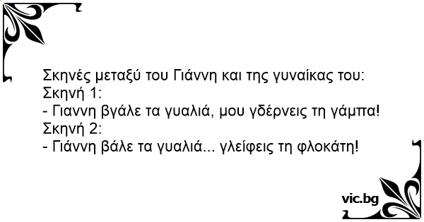 - Γιαννη βγάλε τα γυαλιά, μου γδέρνεις τη γάμπα!