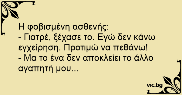 - Γιατρέ, ξέχασε το. Εγώ δεν κάνω εγχείρηση. Προτιμώ να πεθάνω!