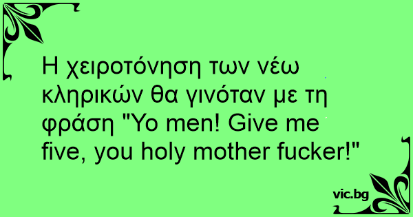 Η χειροτόνηση των νέω κληρικών θα γινόταν με τη φράση "Yo men! Give me five, you holy mother fuскеr!"