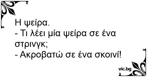 - Τι λέει μία ψείρα σε ένα στρινγκ;