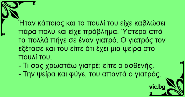 - Την ψείρα και φύγε, του απαντά ο γιατρός.