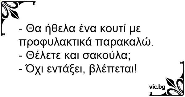 В аптеката: - 20 презерватива, моля. - Пликче искате ли? - Не, тя ми е много красива!!!