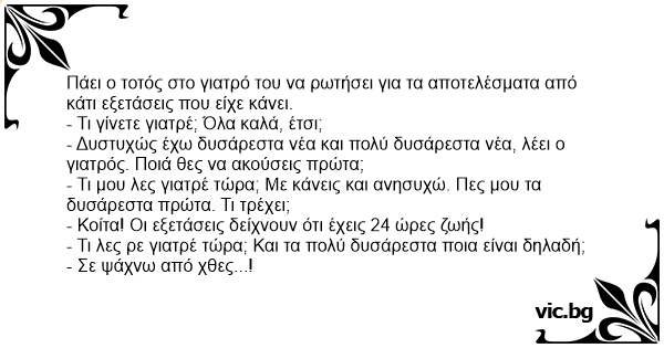 - Κοίτα! Οι εξετάσεις δείχνουν ότι έχεις 24 ώρες ζωής!