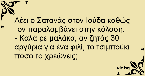 - Καλά ρε μαλάκα, αν ζητάς 30 αργύρια για ένα φιλί, το τσιμπούκι πόσο το χρεώνεις;
