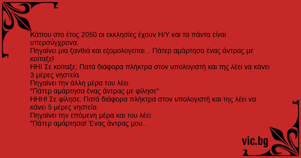 Κάπου στο έτος 2050 οι εκκλησίες έχουν Η/Υ και τα πάντα είναι υπερσύγχρονα.