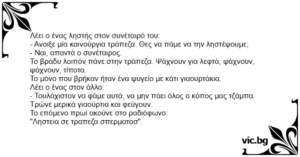 Λέει ο ένας ληστής στον συνέταιρό του: