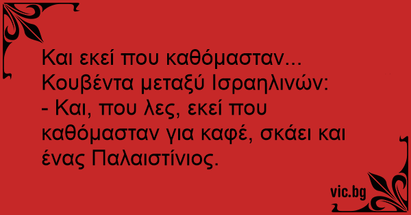 - Και, που λες, εκεί που καθόμασταν για καφέ, σκάει και ένας Παλαιστίνιος.