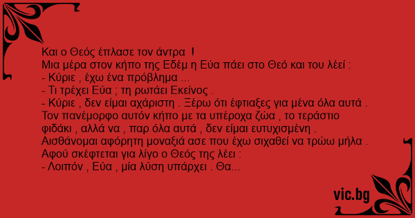 Μια μέρα στον κήπο της Εδέμ η Εύα πάει στο Θεό και του λέεί :